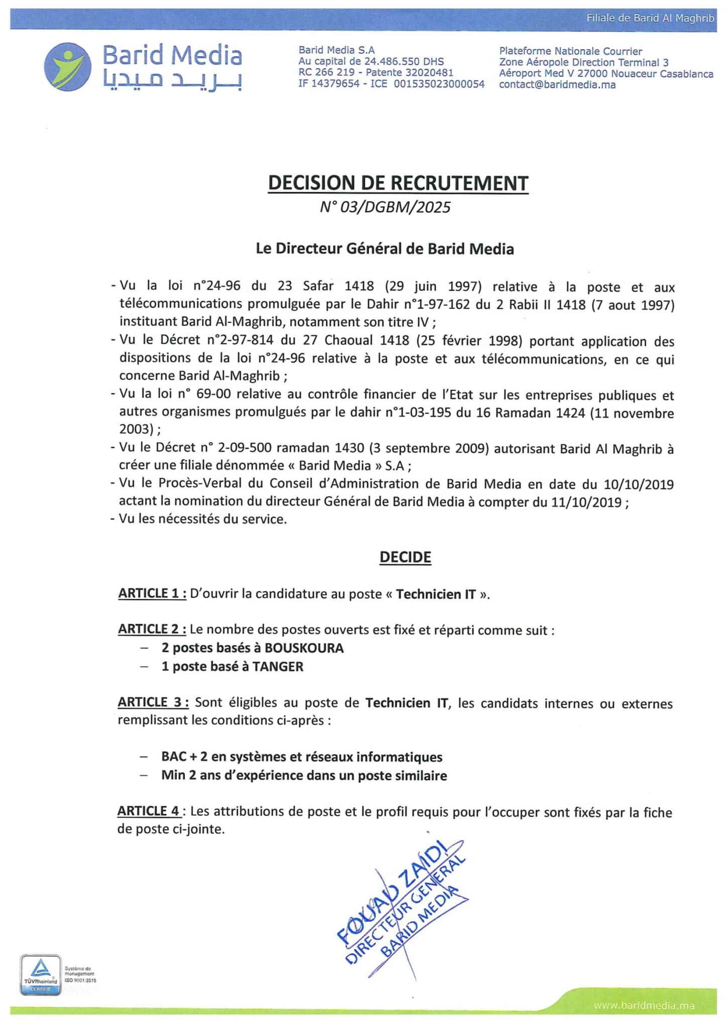 Concours de Recrutement chez Barid Media – Poste du Maroc : 4 Opportunités