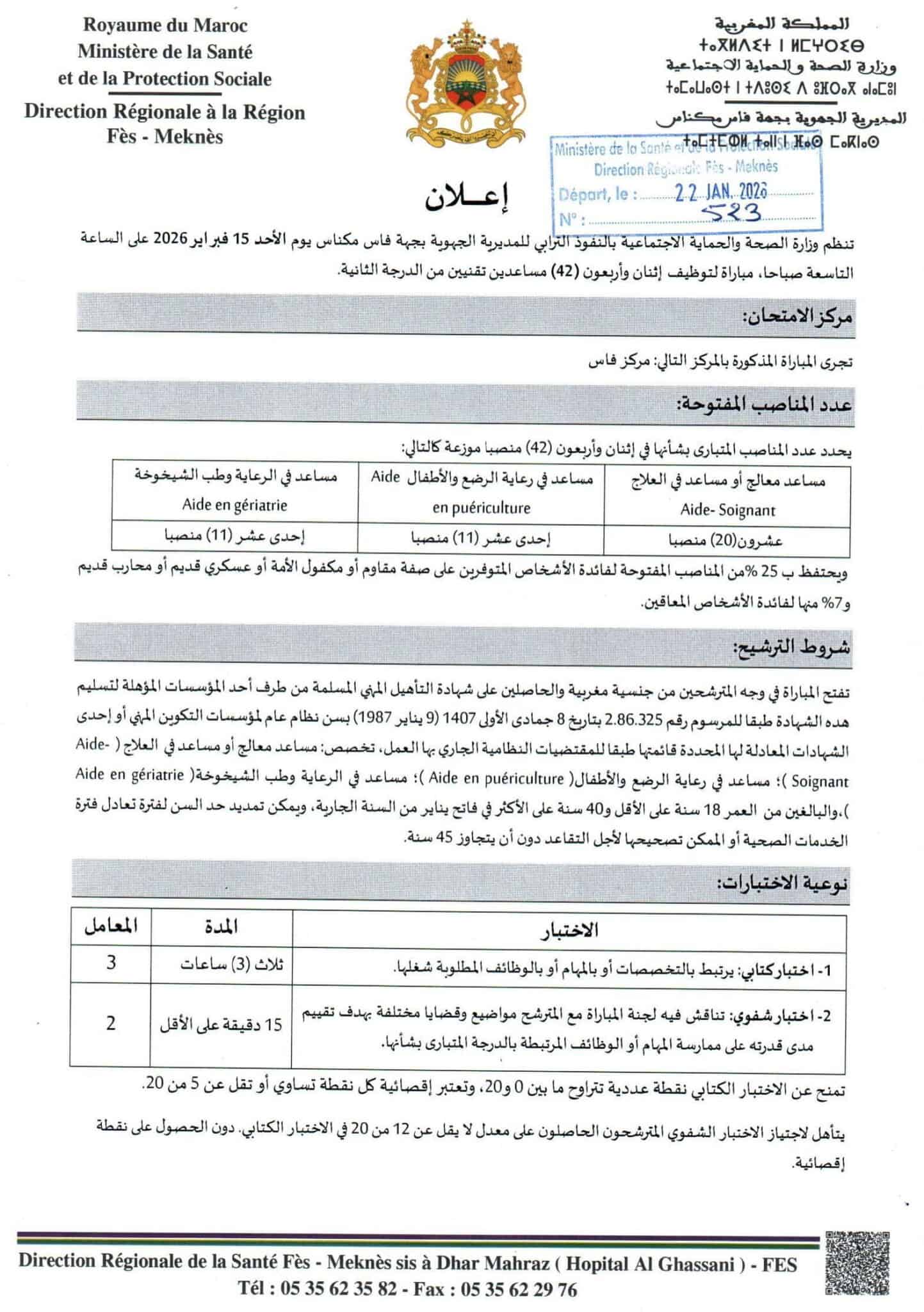 Tags: المديرية الجهوية للصحة لجهة فاس مكناس 2026