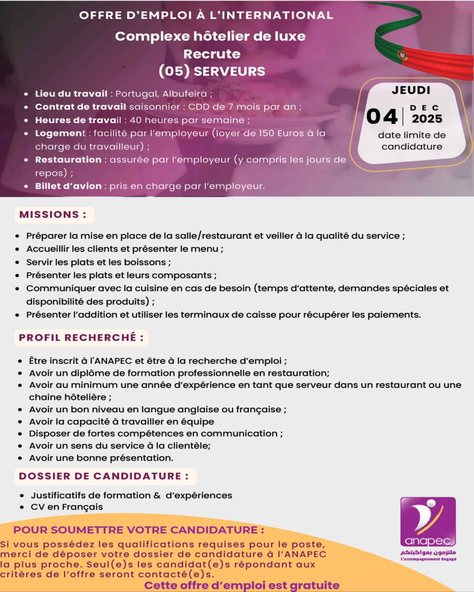 Tags: anapecEmploi InternationalImmigrationInternationalPortugal