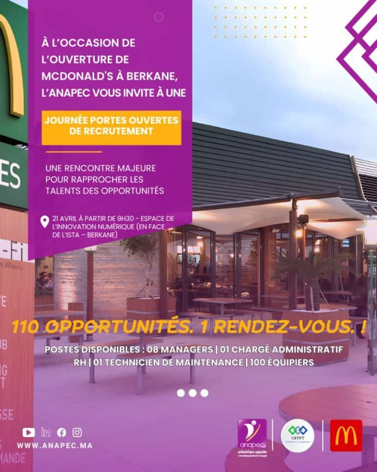 McDonald’s lance une campagne de recrutement à Berkane pour pourvoir 110 postes, à l’occasion d’une journée portes ouvertes organisée en collaboration avec l’ANAPEC.